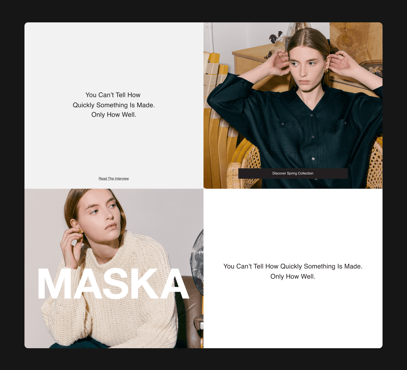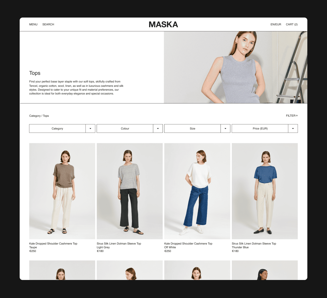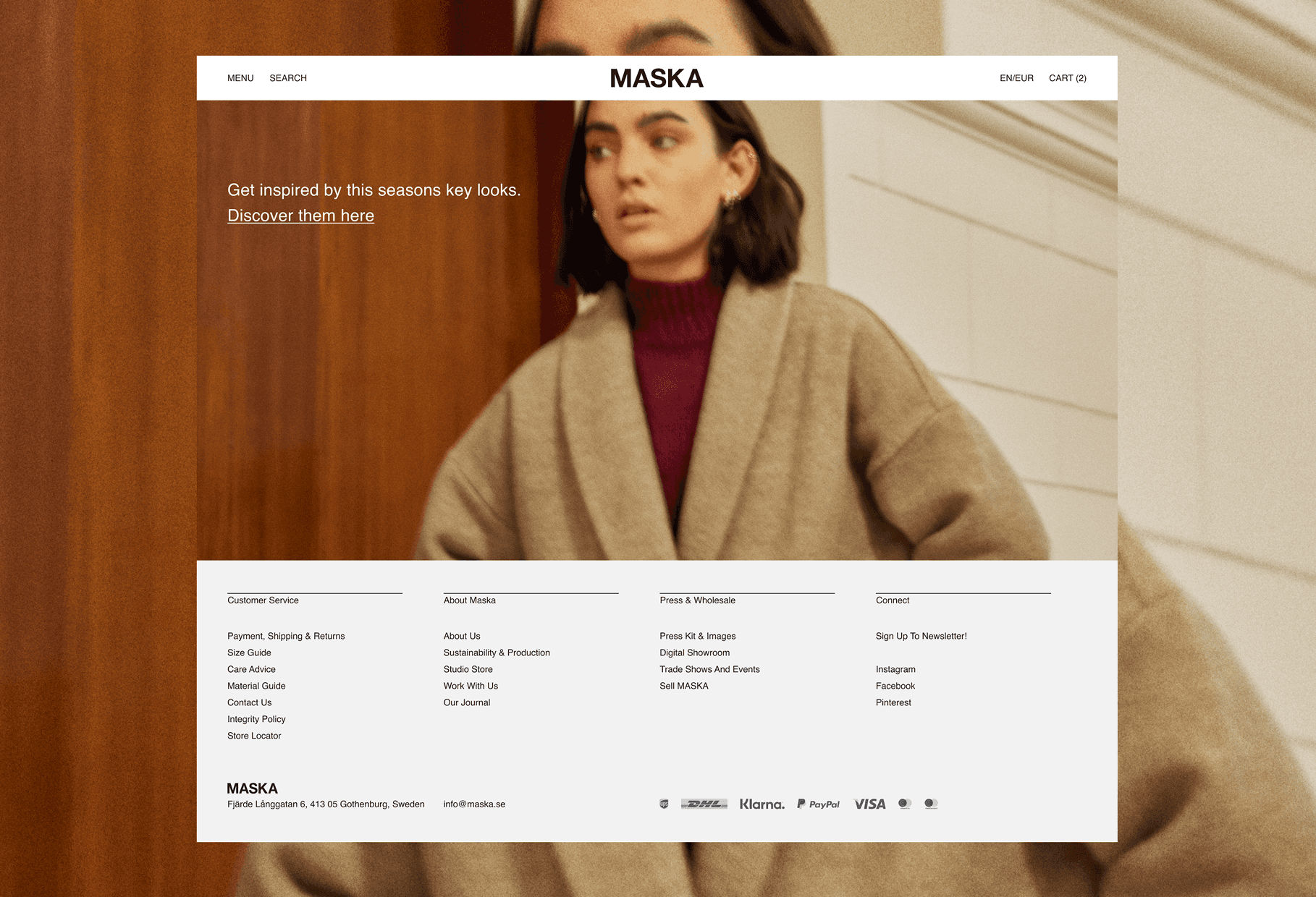 An e-commerce website for MASKA, a fashion brand based in Gothenburg, Sweden — designed in collaboration with Henrik Stelzer.